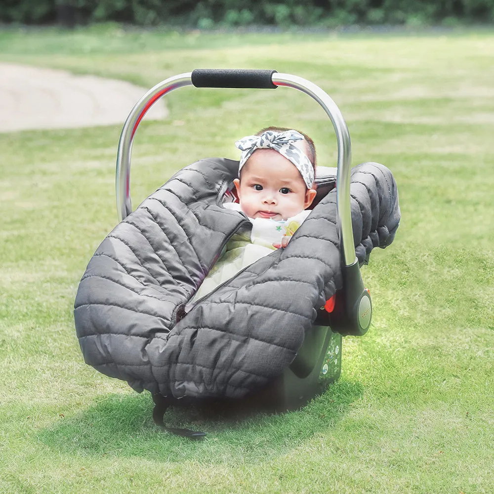 Ако използвате столчето за кола върху шасито на количката – особено през студените месеци – това универсално ватирано покривало е практично решение за защита и уют. Подходящо за почти всички бебешки столчета от група 0, то предпазва новородени и малки деца от вятър, дъжд, сняг и студ.