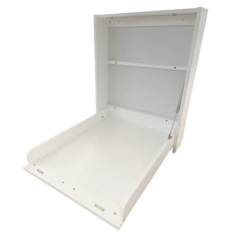 Масата се монтира директно на стената и при затворено положение заема едва 14 см дълбочина – идеален избор за по-малки бани, детски стаи или помещения с ограничено място.