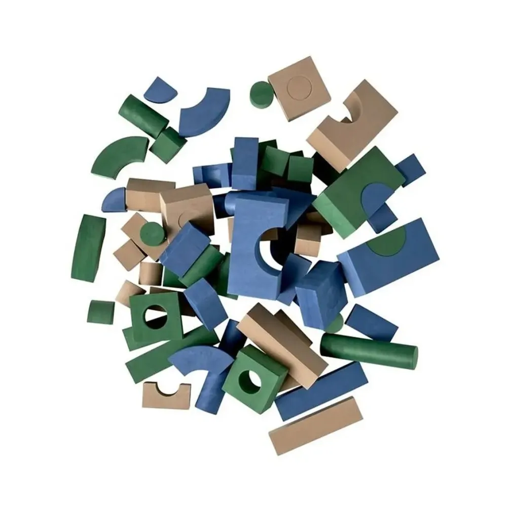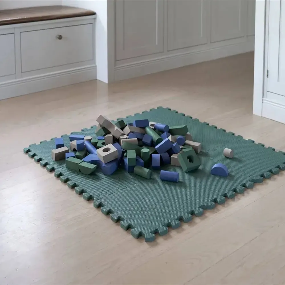 За разлика от твърдите пластмасови или дървени блокове, тези меки елементи не вдигат шум и не надраскват пода. Те са напълно без съдържание на PVC, фталати и други вредни вещества и са одобрени за деца от 0+ месеца.