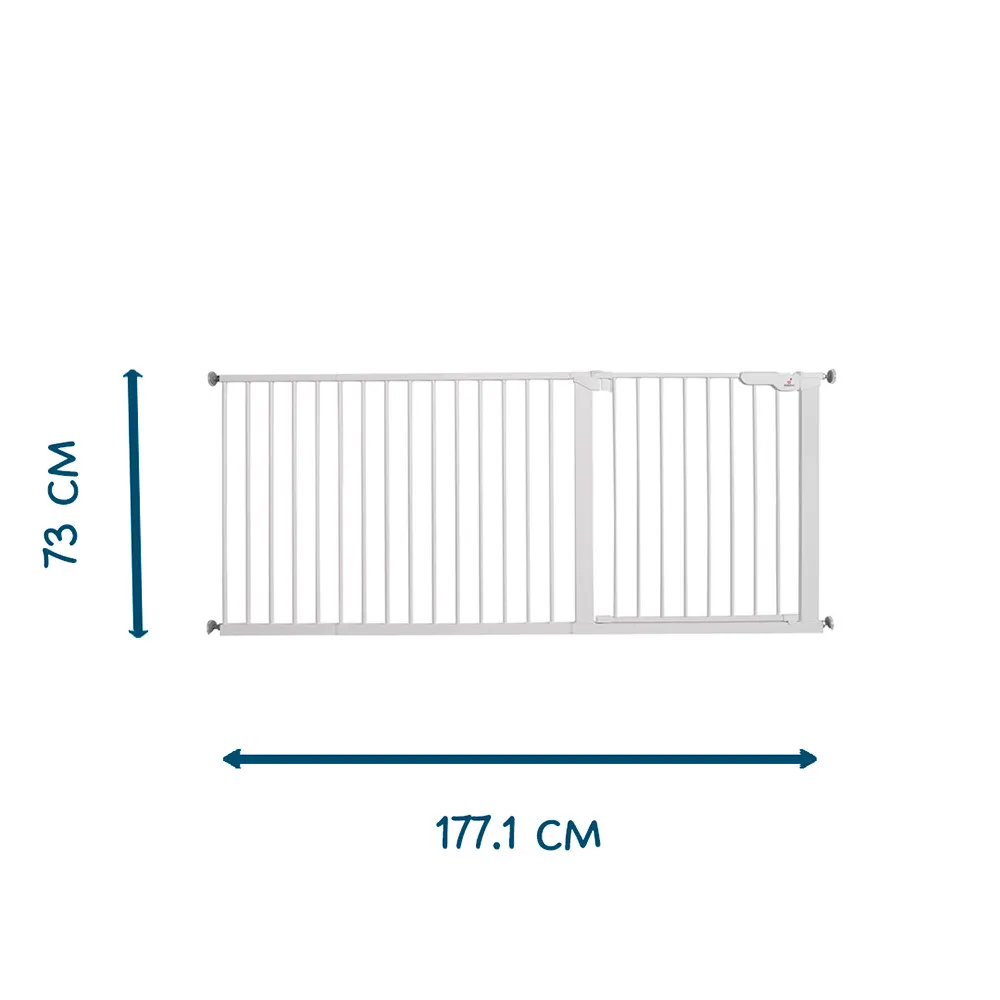 Арт. номер: BD1220555Предпазна преграда за много големи отвори - до 177 см. С нея не се притеснявате дали мъничето ще отиде в „опасни“ зони, в които не е нужно, и можете лесно да създадете зони, подходящи за деца. Вратата може да се отваря от двете страни само с една ръка.