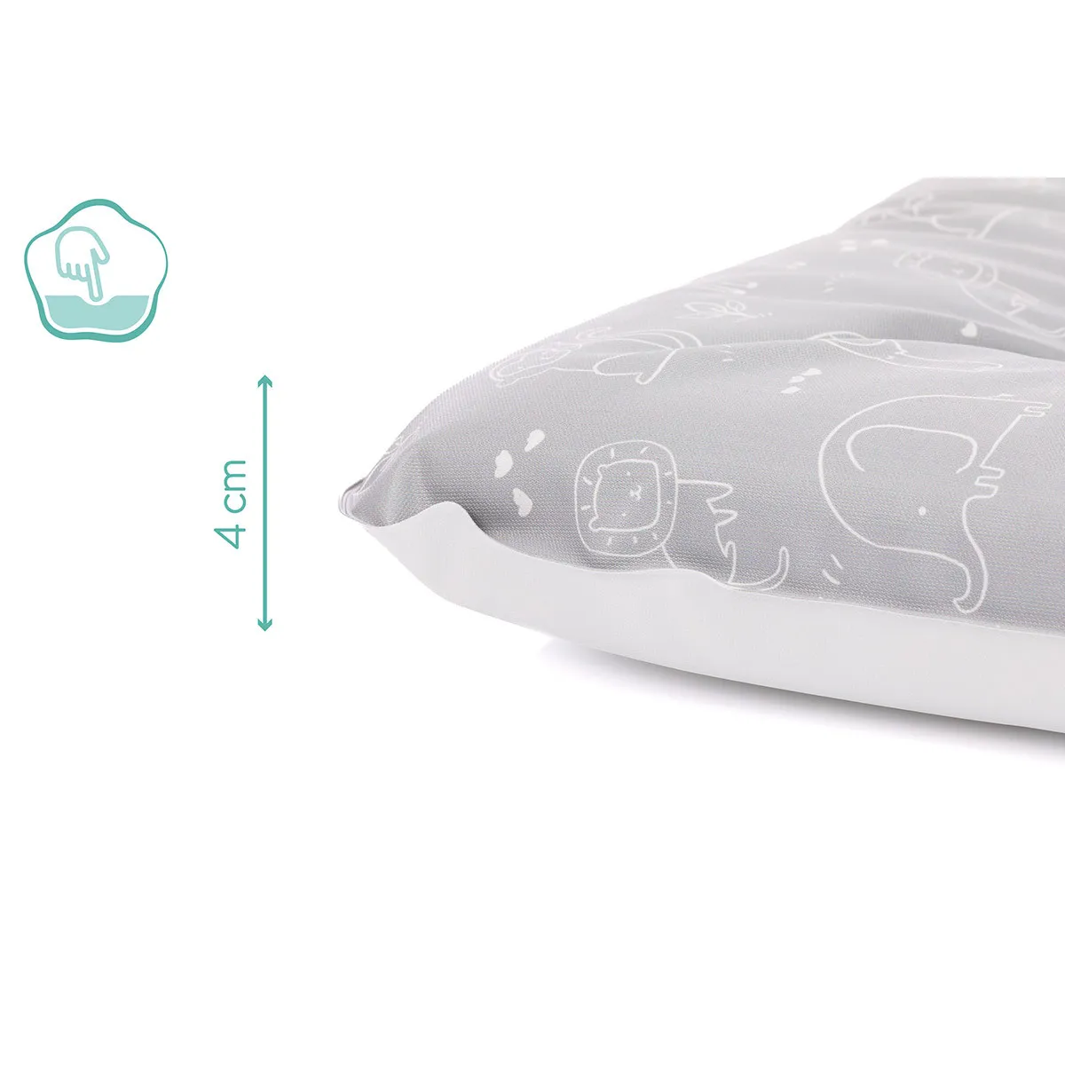 Меката подплата осигурява удобство, а повдигнатите странични ръбове предпазват детето от нежелани удари и падане. Повърхността е изработена от приятен на допир, водоотблъскващ материал, който се почиства лесно само с едно забърсване.
