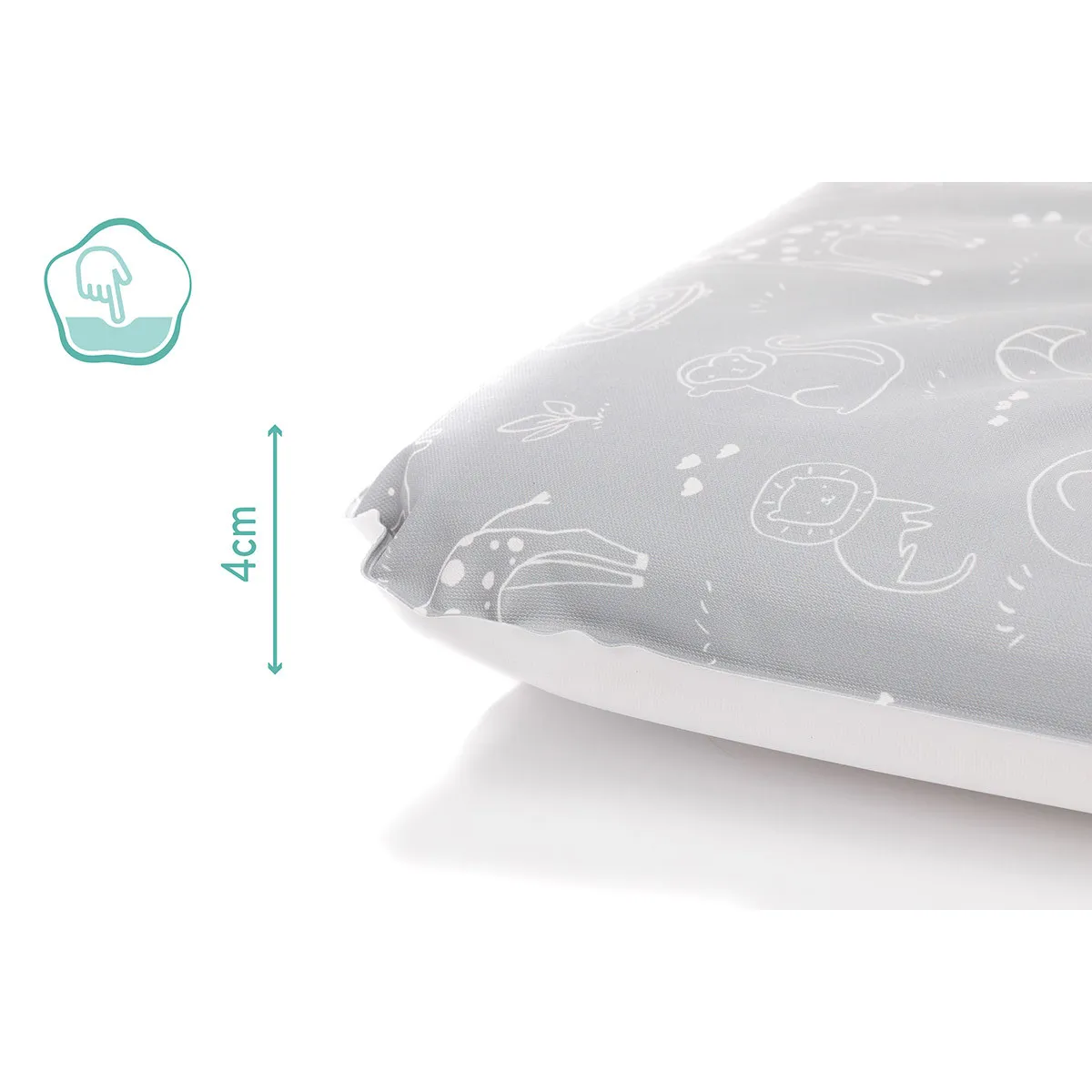 Меката подплата осигурява удобство, а повдигнатите странични ръбове предпазват детето от нежелани удари и падане. Повърхността е изработена от приятен на допир, водоотблъскващ материал, който се почиства лесно само с едно забърсване.