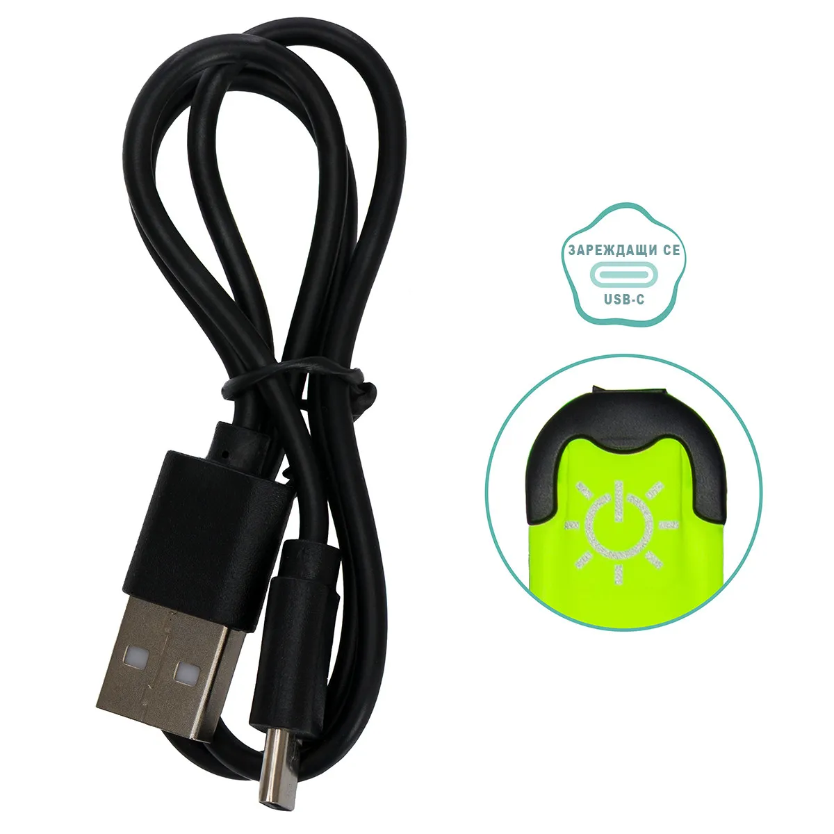 LED лентата разполага с три режима на светене – постоянна светлина, бавно мигане и бързо мигане, за да изберете нивото на видимост според условията и средата. Тя е презареждаща се и се доставя с USB кабел за удобно зареждане.