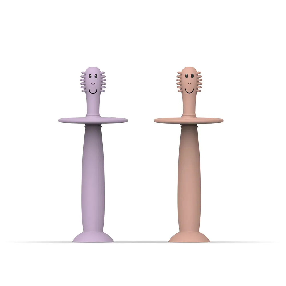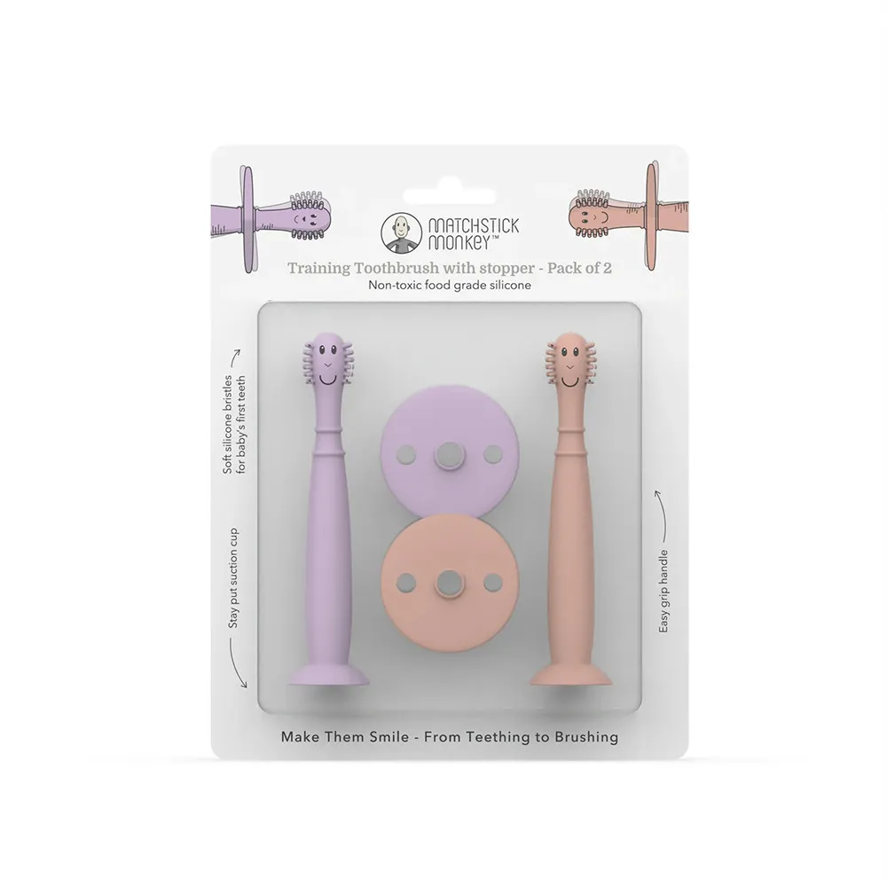 Matchstick Monkey 2 броя бебешки четки за зъби със стопер - Dusty Pink & Lilac