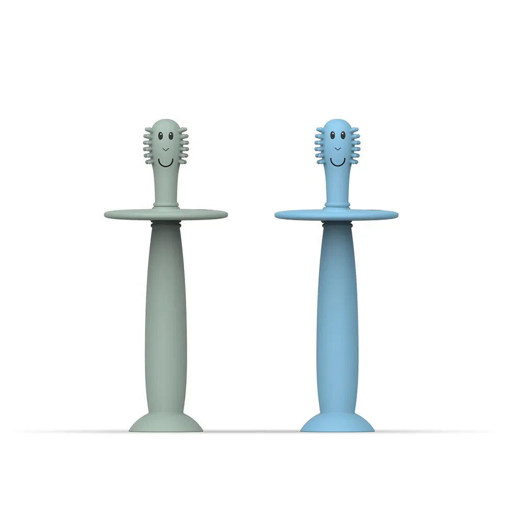Тренировъчната четка за зъби със стопер на Matchstick Monkey е създадена да насърчава самостоятелното миене на зъбки още от най-ранна възраст. С мека силиконова дръжка, удобна за малките ръчички, и нежни силиконови косъмчета, които щадят венците и първите зъбки. Вградената ограничителна приставка осигурява безопасно използване, а BioCote® антимикробната защита поддържа четката по-чиста за по-дълго. Забавен, безопасен и лесен начин да превърнете миенето в ежедневен навик!
