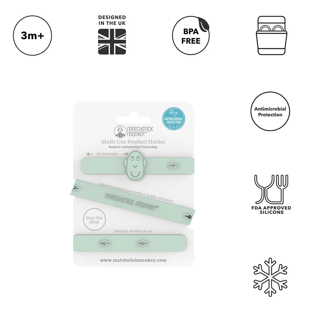 Мултифукционален държач Matchstick Monkey е подходящ за закачане на бебешки бутилки, бебешки чесалки или други аксесоари. Може да закачите мултифункционалния държач към бебешка количка, столче за кола или столче за хранене.