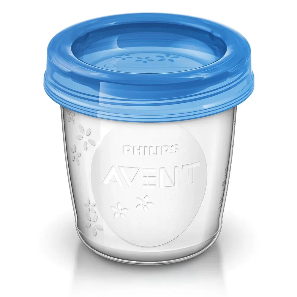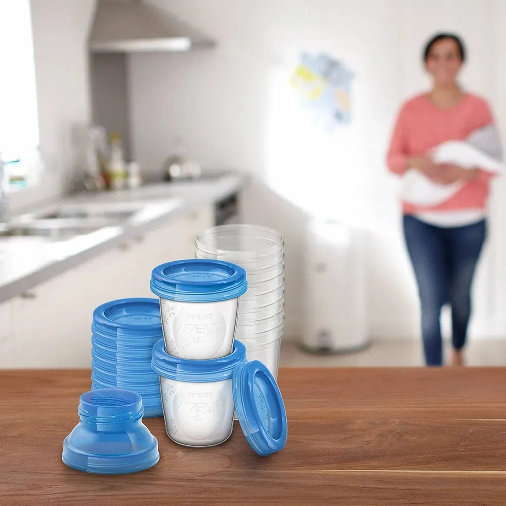 - Изцедете кърмата директно в Чашите за съхранение с помощта на Помпата за изцеждане Philips AVENT.