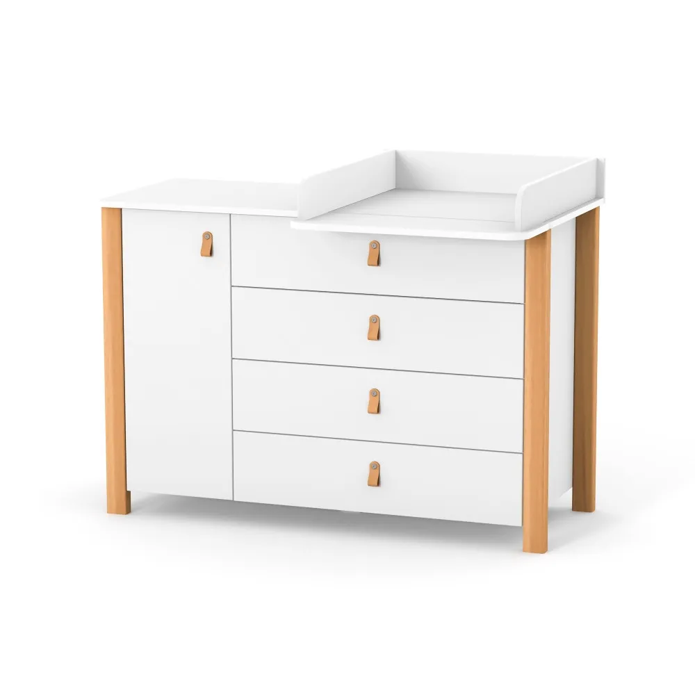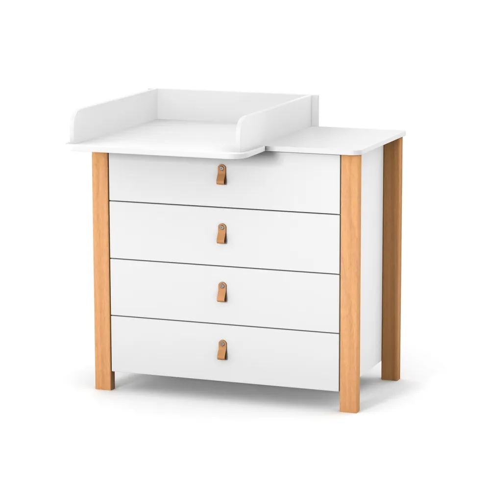Масата за преповиване Veres се предлага в широк или тесен вариант, в зависимост от ширината на скрина – може да покрива целия плот или да оставя допълнително място за съхранение на аксесоари като пелени, кремове, кърпички и други ежедневни принадлежности.