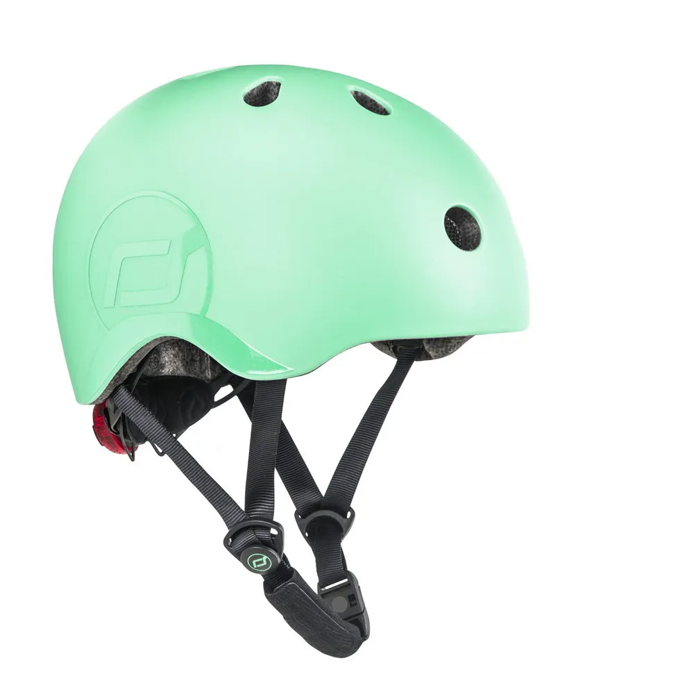 Каските на Scoot & Ride осигуряват максимална защита и комфорт на детето, комбинирани с модерен дизайн. Благодарение на иновативната магнитна закопчалка, каската се закопчава сигурно и лесно – дори от самото дете. Меката подложка под брадичката предпазва кожата от протриване, осигурявайки допълнителен комфорт при носене.
