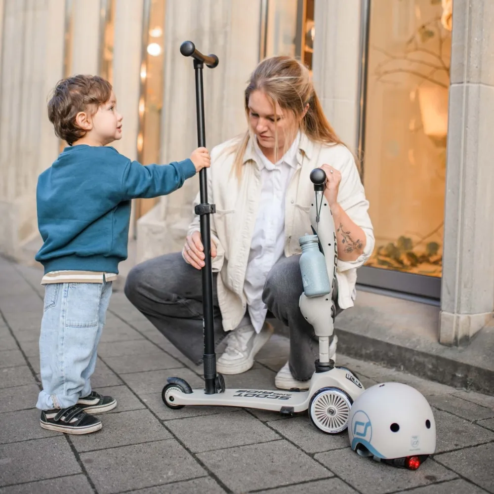 Highwaykick 1 Push and Go предлага уникална, патентована система за трансформация, която позволява лесно и бързо превръщане на тротинетката в колело за баланс – без нужда от инструменти. С двойното си заключване моделът е напълно сигурен и удобен за ежедневна употреба.