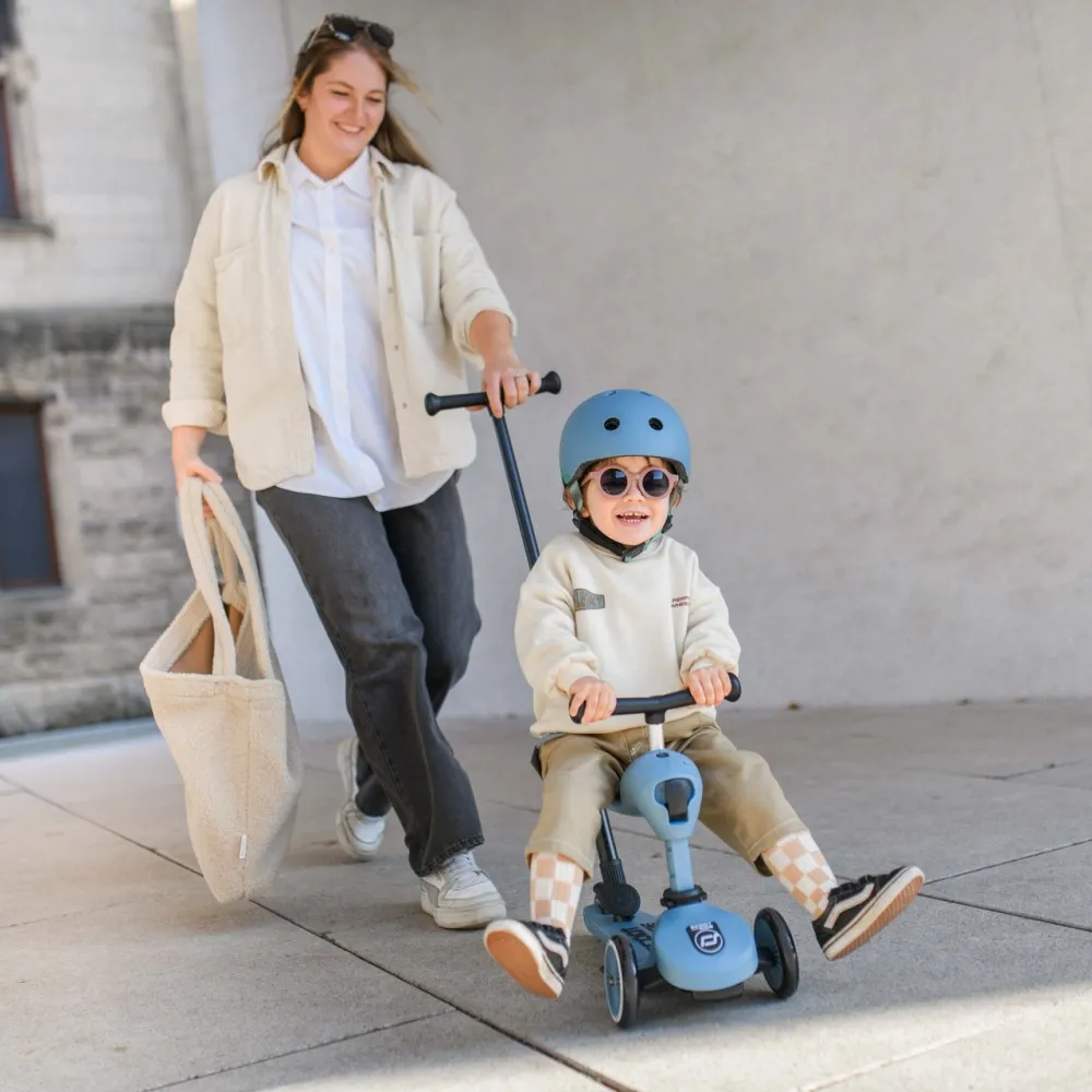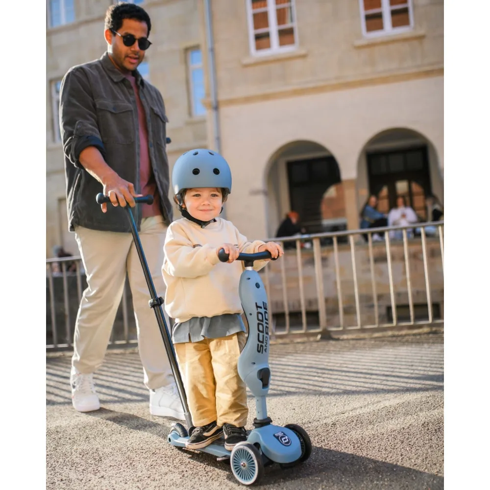 Highwaykick 1 Push and Go предлага уникална, патентована система за трансформация, която позволява лесно и бързо превръщане на тротинетката в колело за баланс – без нужда от инструменти. С двойното си заключване моделът е напълно сигурен и удобен за ежедневна употреба.