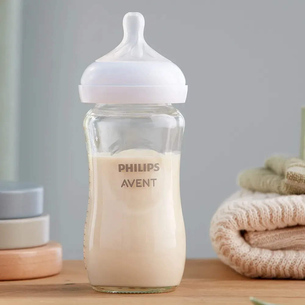 Philips AVENT Стъклено шише за хранене Natural Response 240 мл с биберон, Поток 3 (1м+)