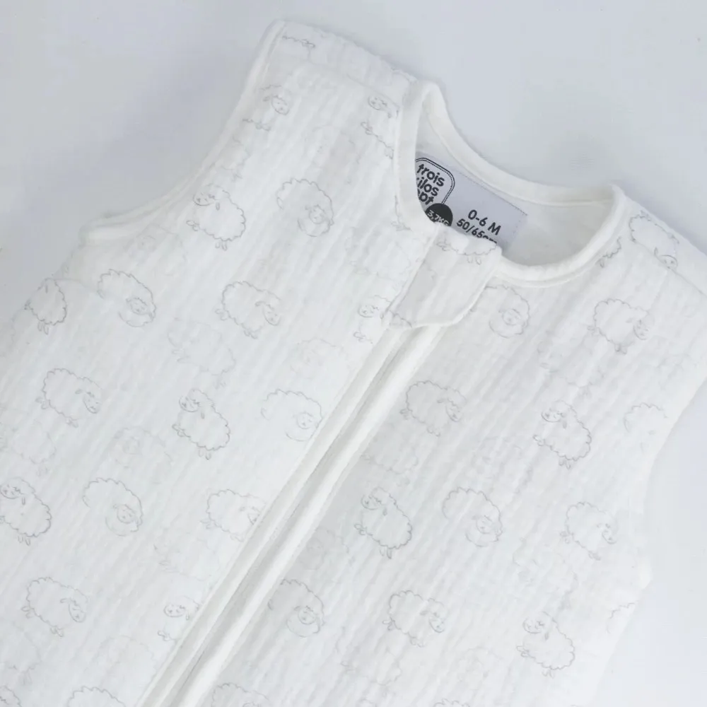 Арт. номер: TKS8487003Спален чувал без ръкави за новородено Wooly & Buddy, 65 см. TOG 2 за уютен сън при 20°C, унисекс дизайн с нежни овчици. Мек муселин, безопасен и удобен за бебето.