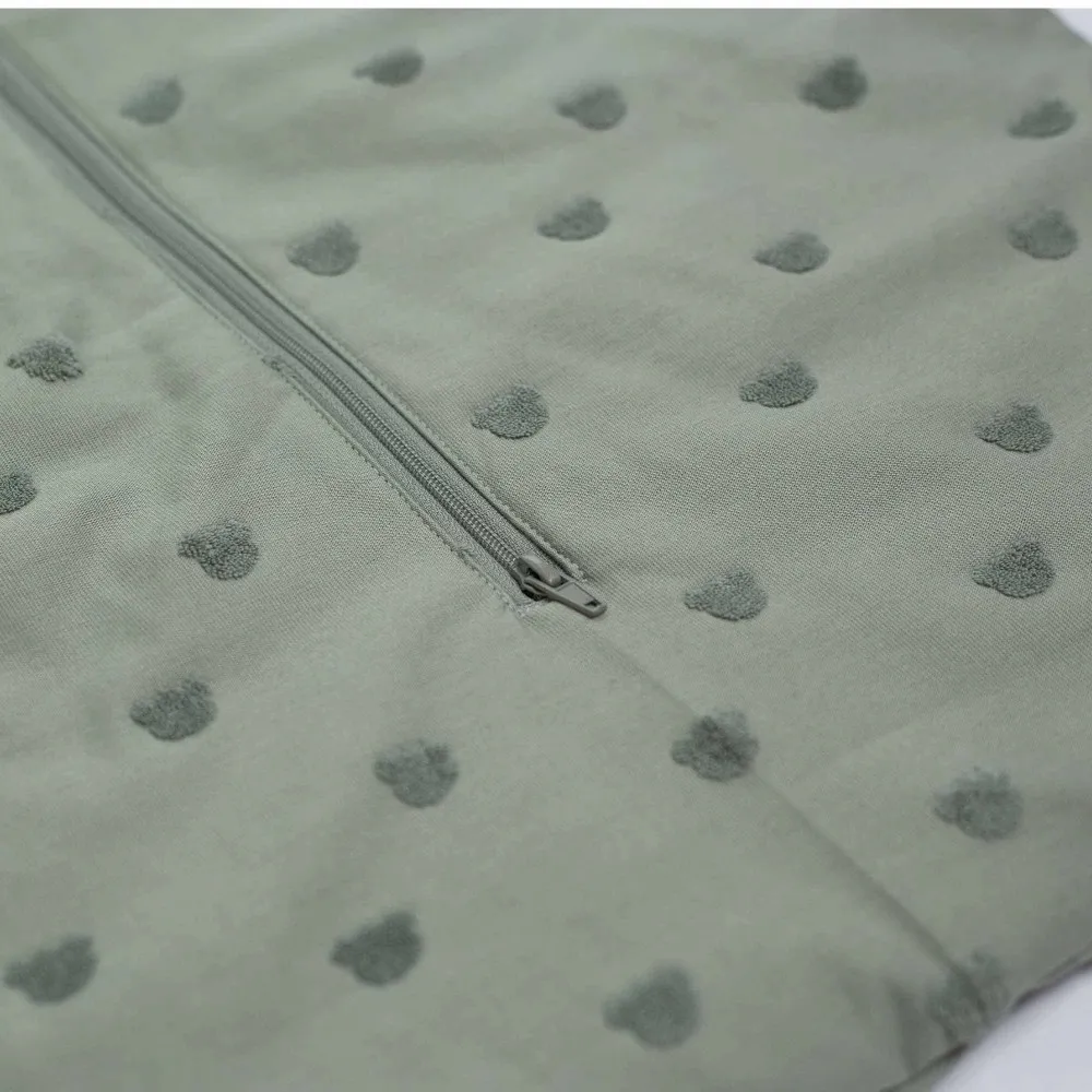 В топъл глиненозелен цвят и с фина шарка с малки мечета, този модел е едновременно стилен и неутрален – подходящ както за момичета, така и за момчета. Материята е мека, издръжлива и приятна на допир, гарантирайки уютен сън на бебето.
