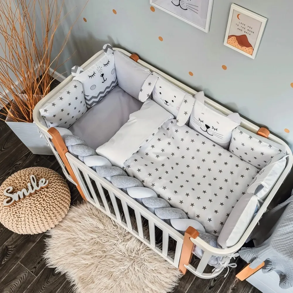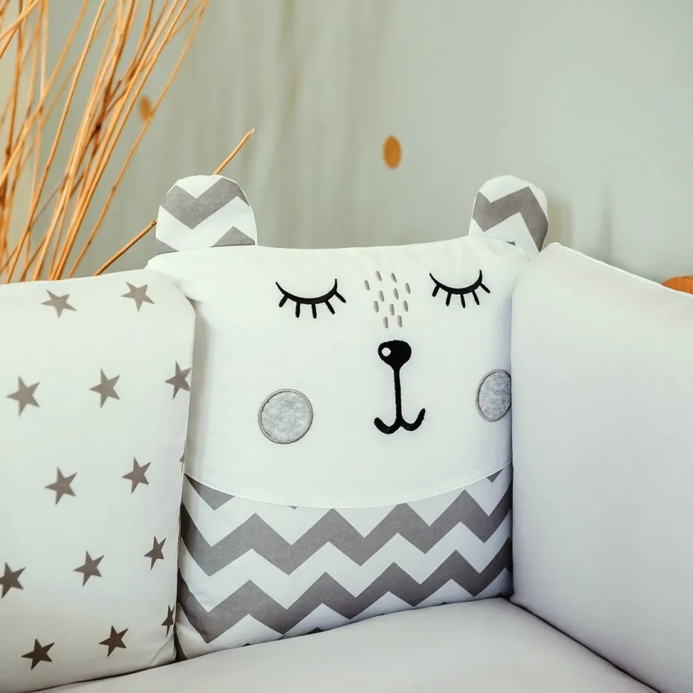 Арт. номер: VE12.34.56.23Осигурете комфорт по време на сън и почивка на новороденото бебе със спален комплект Veres Smiling Animals Grey, предназначен за кошара с размери 120 х 60 см.