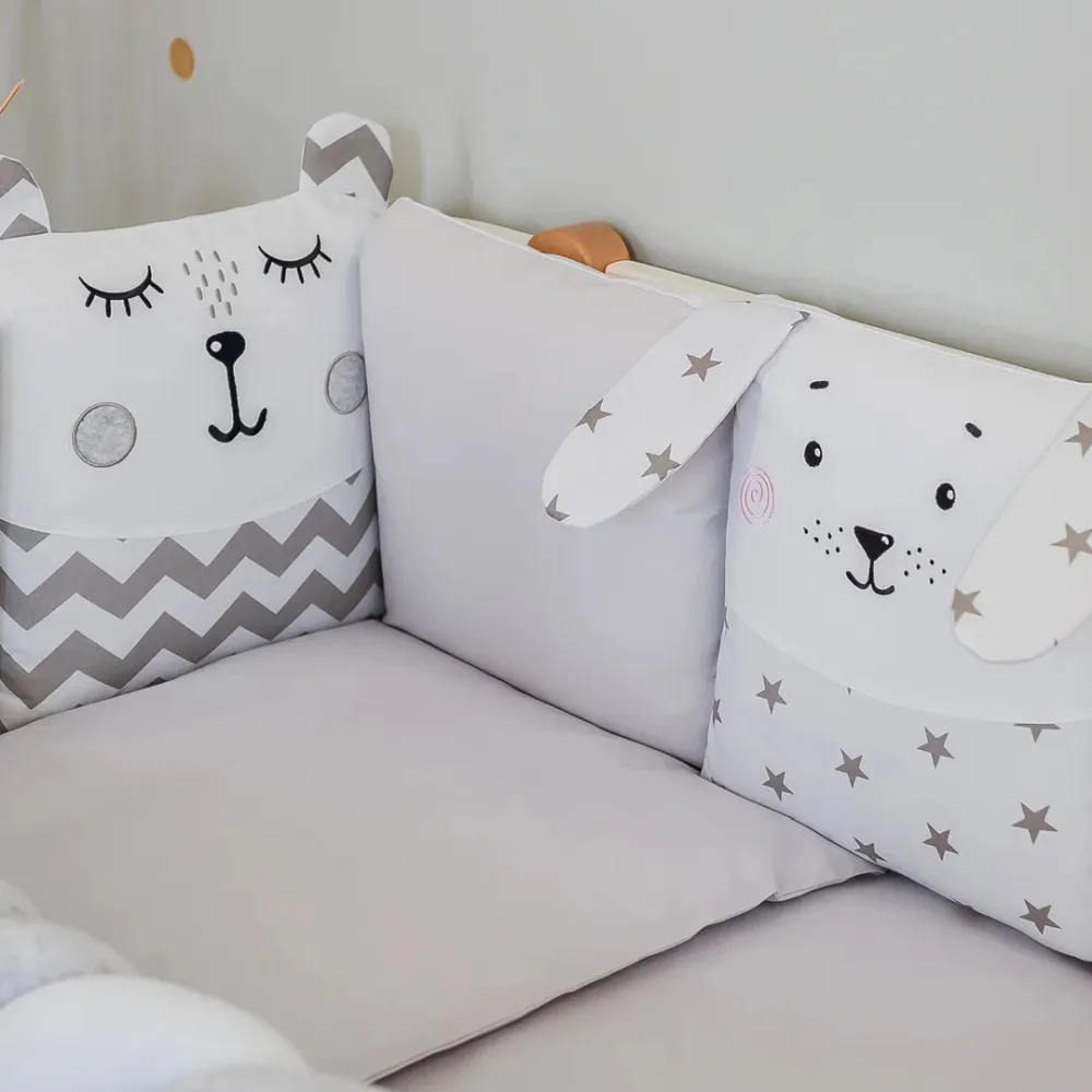Veres Бебешки спален комплект за кошара - Smiling Animals Grey