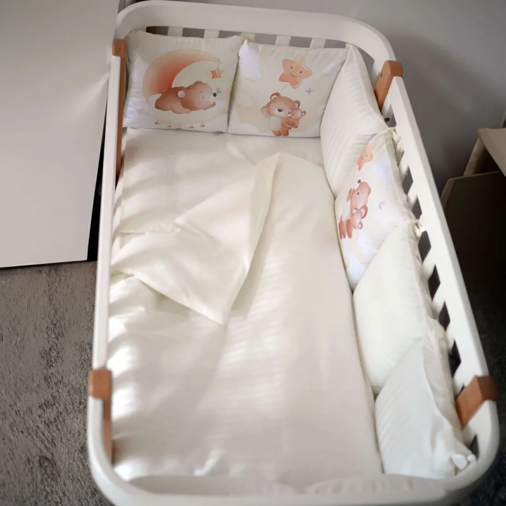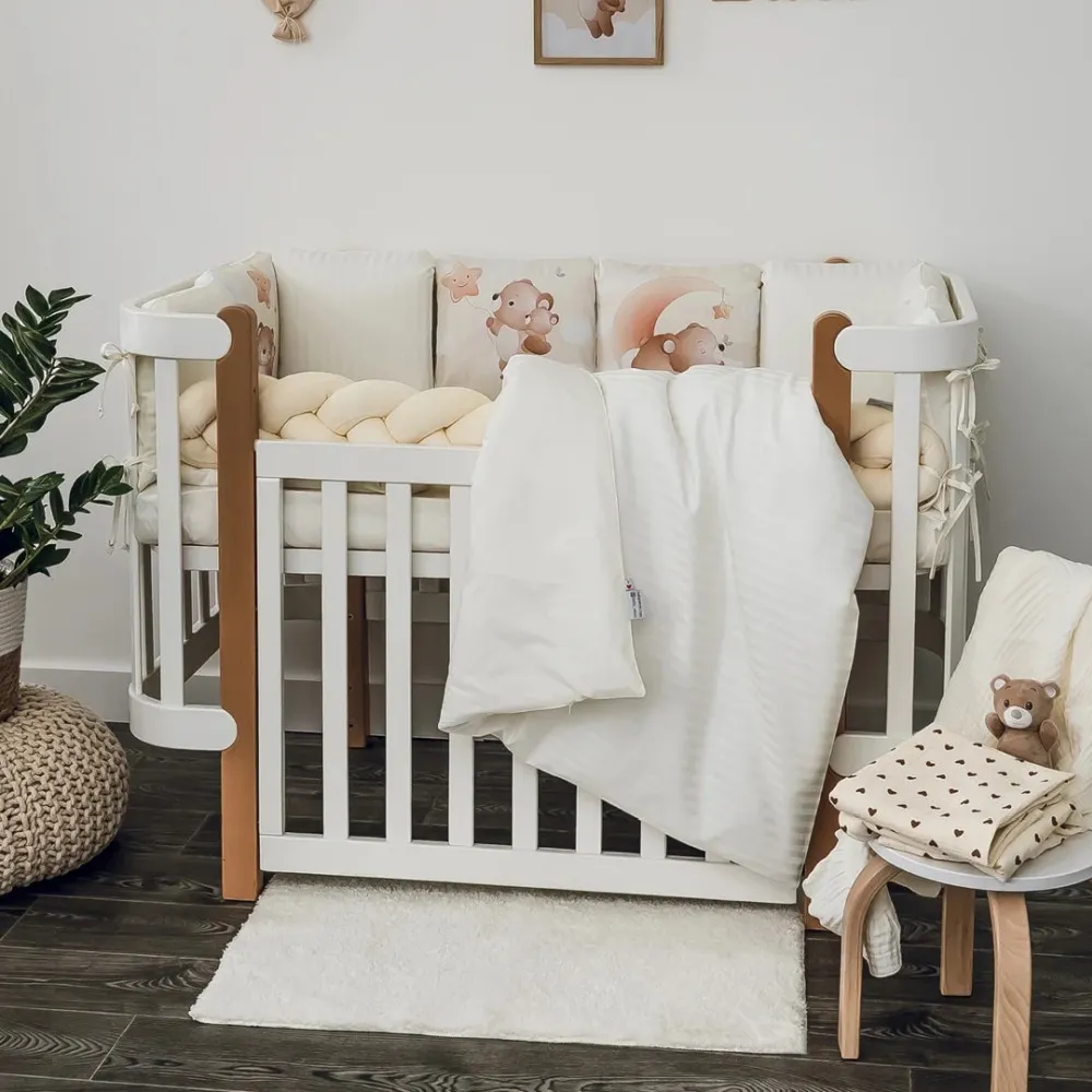 Спалният комплект Veres е изработен от хипоалергенни, естествени материали, преминал санитарно-хигиенен контрол и напълно безопасен за здравето на бебето.