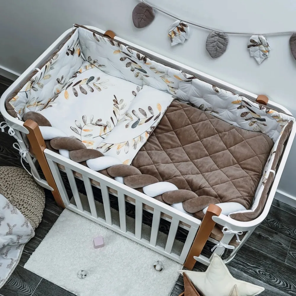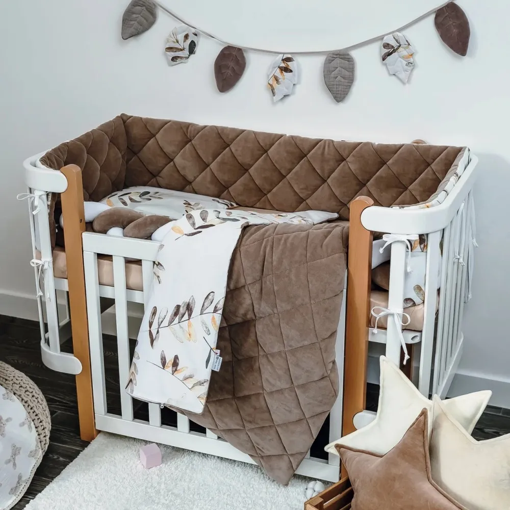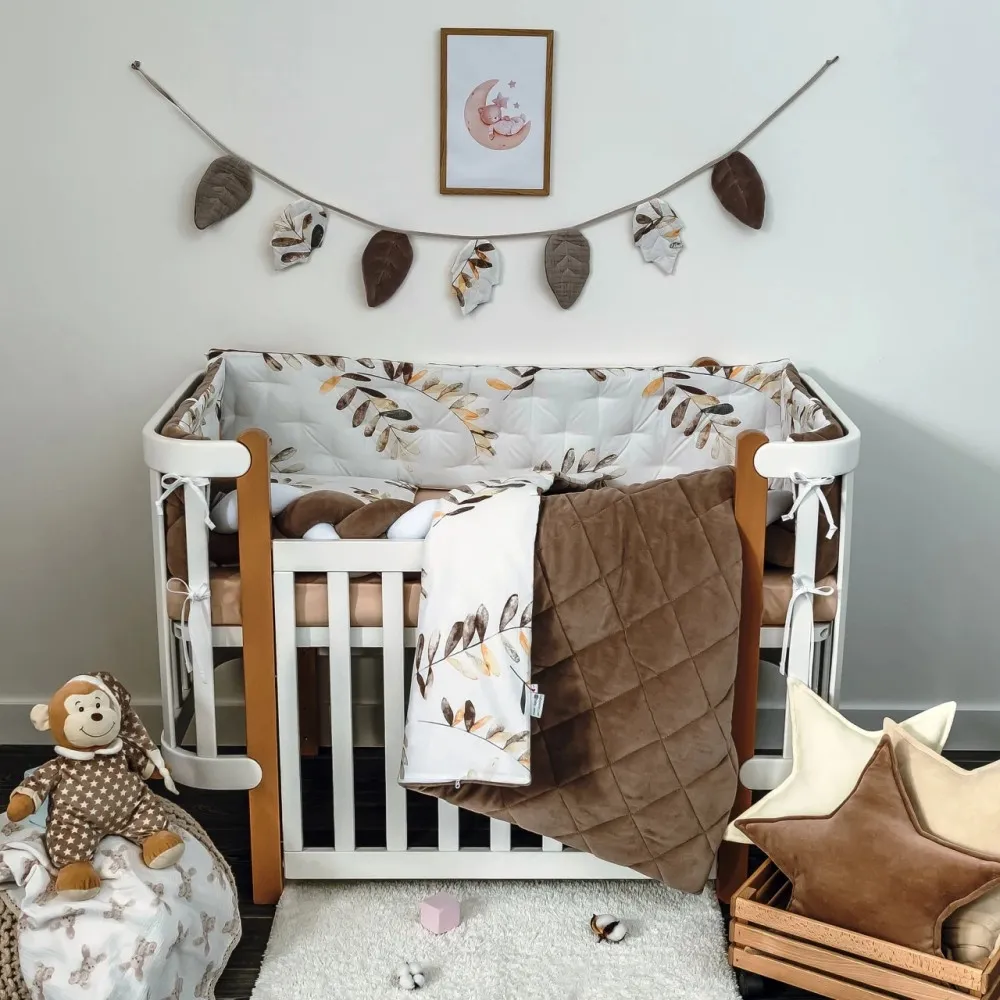 Veres Бебешки спален комплект за кошара - Velour Mokko Leaves