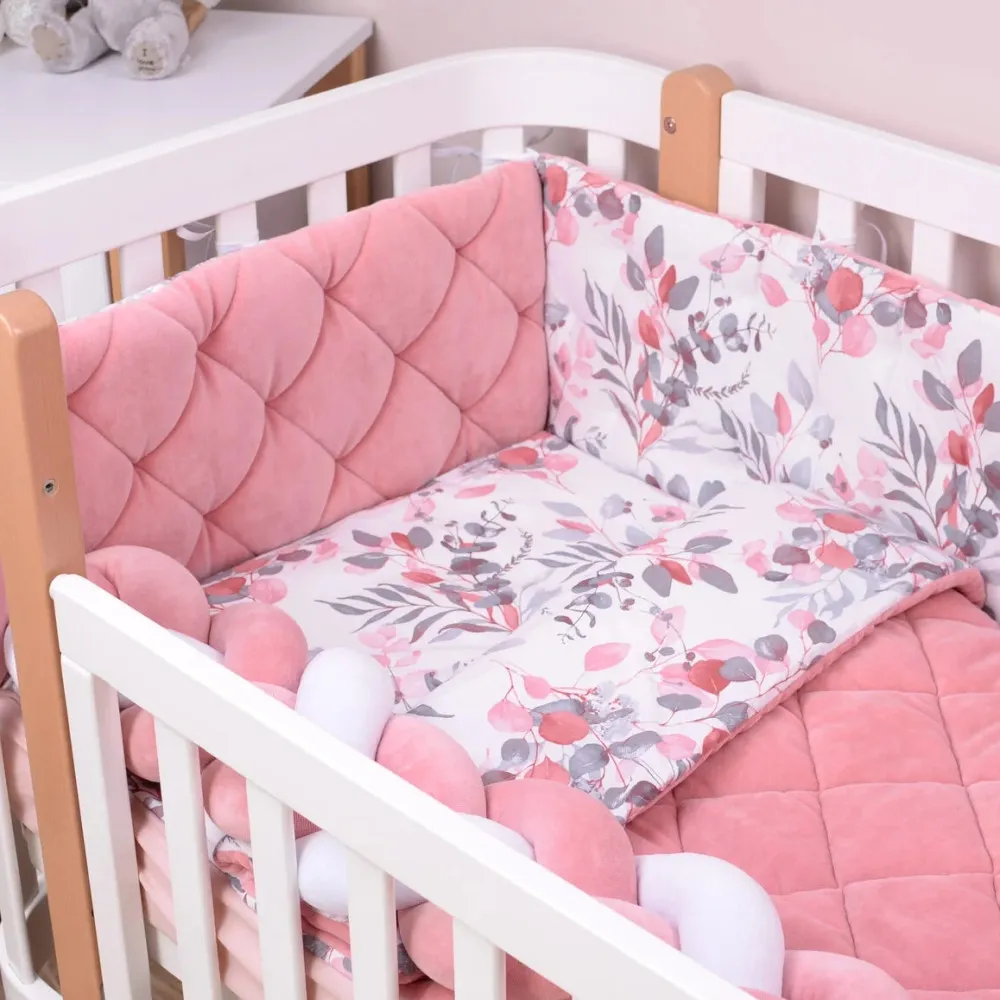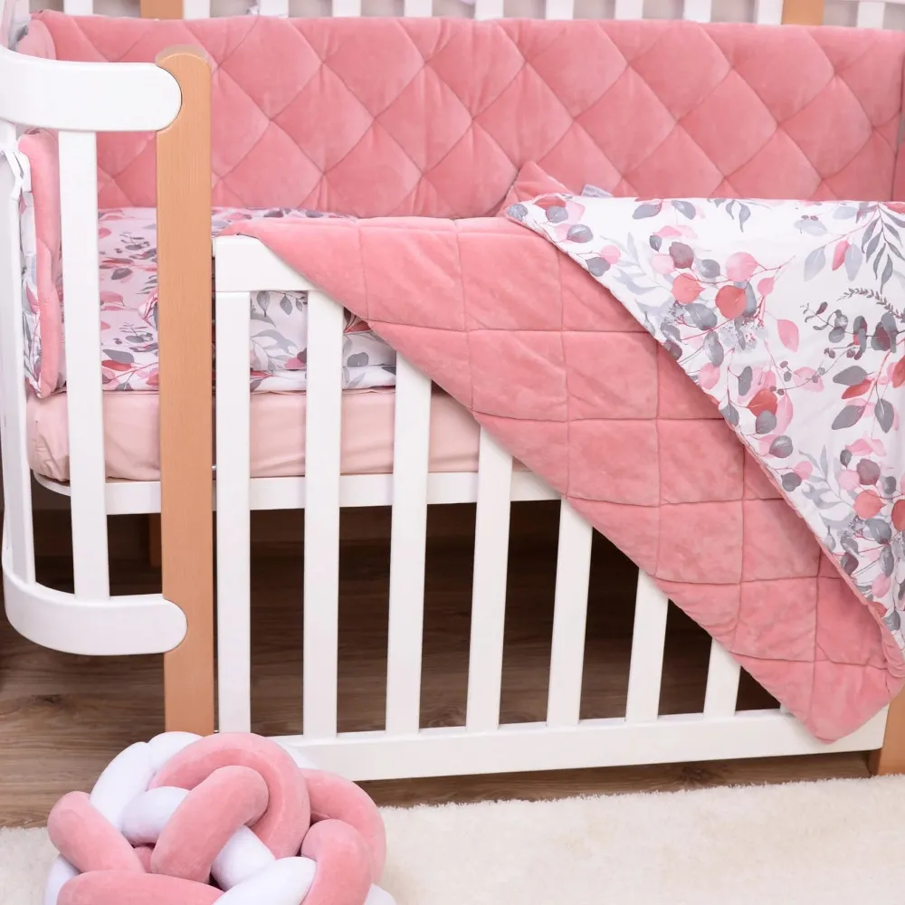 Veres Бебешки спален комплект за кошара - Velour Powdery Leaves