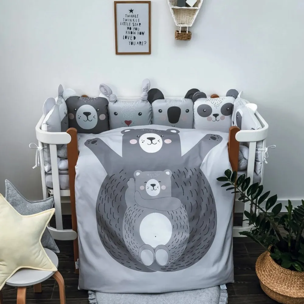 Veres Бебешки спален комплект за кошара - Zoo Grey