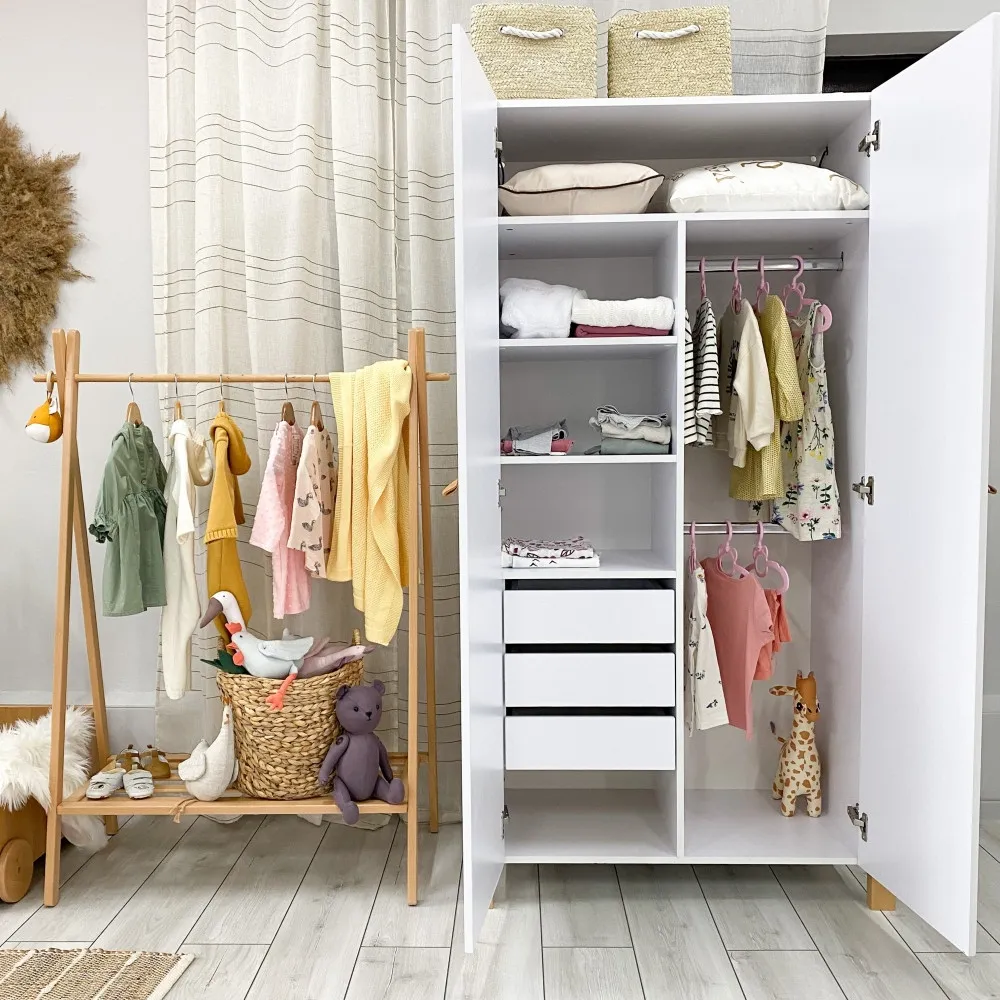 Гардеробът разполага с удобно организирано пространство, което позволява лесно подреждане на дрехи, аксесоари, спално бельо и играчки: