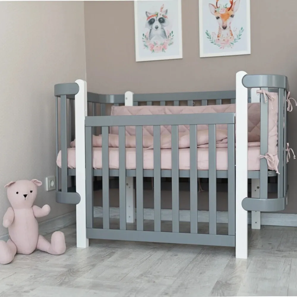 Veres Monaco Бебешка кошара с падаща страна – Сив / Бял