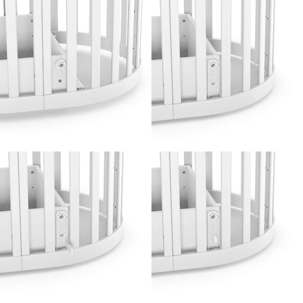Арт. номер: VE14.1.1.38.06Продуктът е изработен от висококачествен MDF и масивна дървесина Бук. Конфигурацията позволява трансформация от компактно кръгло легло, предназначено за матрак с размери 70 × 90 см, до разширена кошара, съвместима с матрак 70 × 140 см.