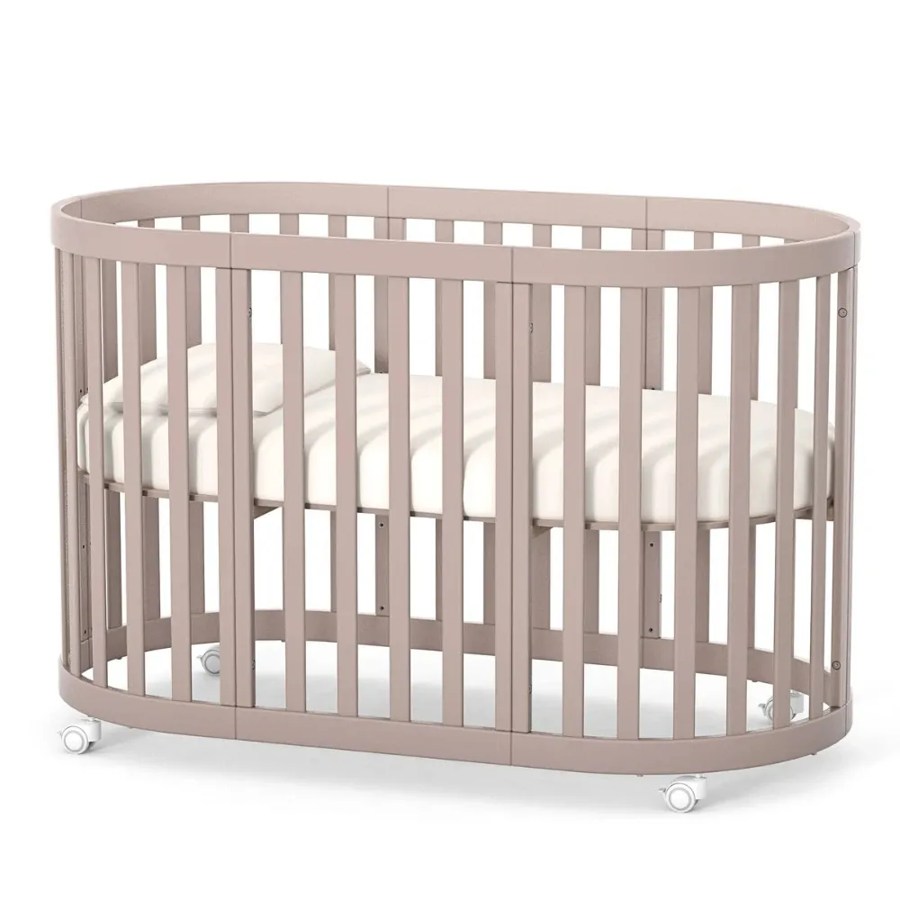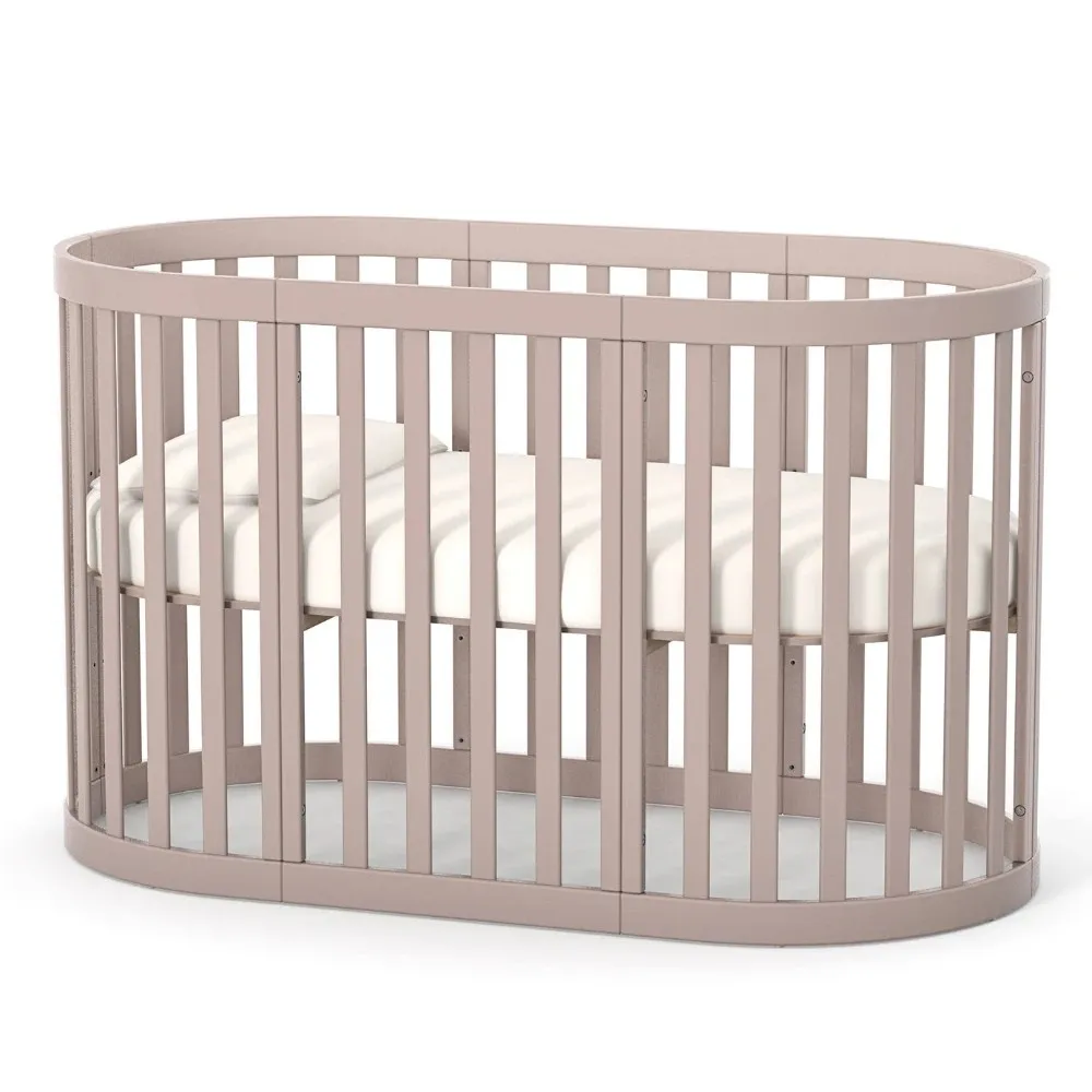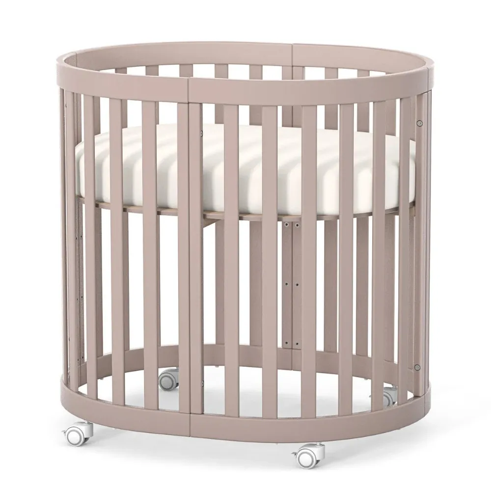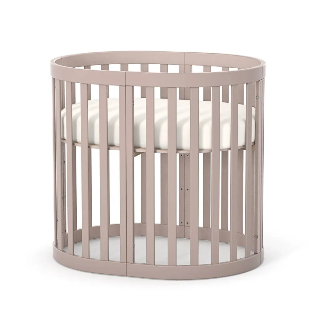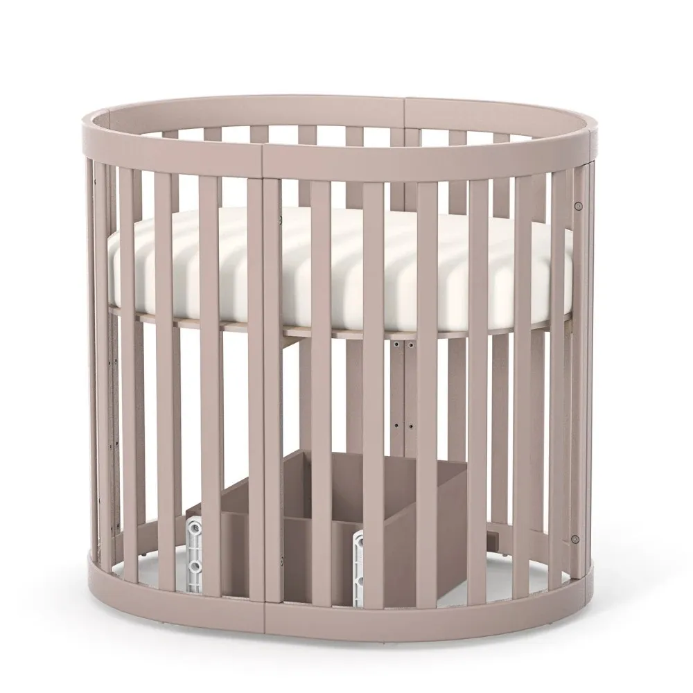 Арт. номер: VE14.1.1.38.13Продуктът е изработен от висококачествен MDF и масивна дървесина Бук. Конфигурацията позволява трансформация от компактно кръгло легло, предназначено за матрак с размери 70 × 90 см, до разширена кошара, съвместима с матрак 70 × 140 см.