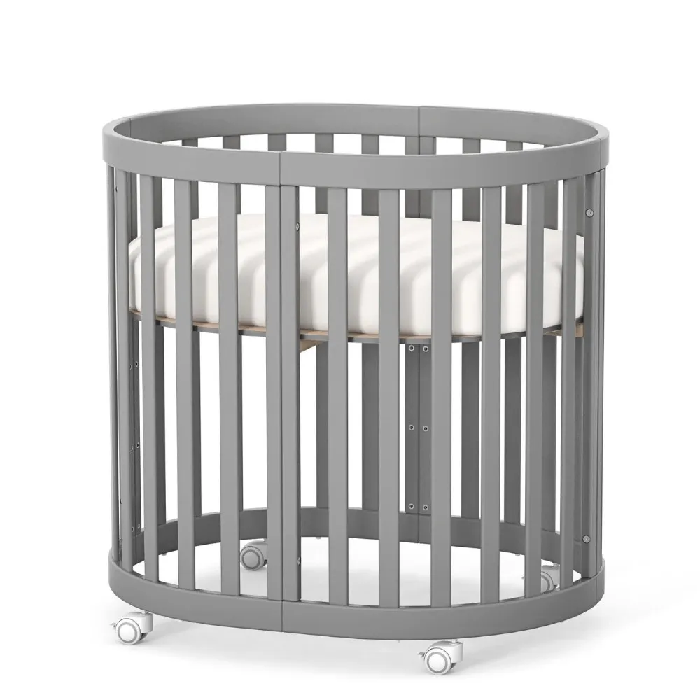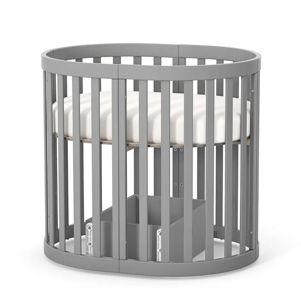 Арт. номер: VE14.1.1.38.321Продуктът е изработен от висококачествен MDF и масивна дървесина Бук. Конфигурацията позволява трансформация от компактно кръгло легло, предназначено за матрак с размери 70 × 90 см, до разширена кошара, съвместима с матрак 70 × 140 см.