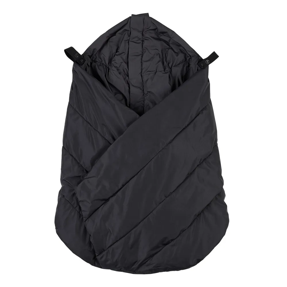 Покривалото се прикрепя лесно към всяка бебеносачка с помощта на копчета. Ципът в горната част позволява бърз достъп до бебето или допълнителна вентилация. Регулируемата качулка осигурява плътно и удобно прилягане около главата, а еластичните връзки в долната част позволяват адаптиране според ръста на детето. Джобовете за ръце предоставят възможност за директен контакт с бебето или служат като затоплящи маншети за родителя.