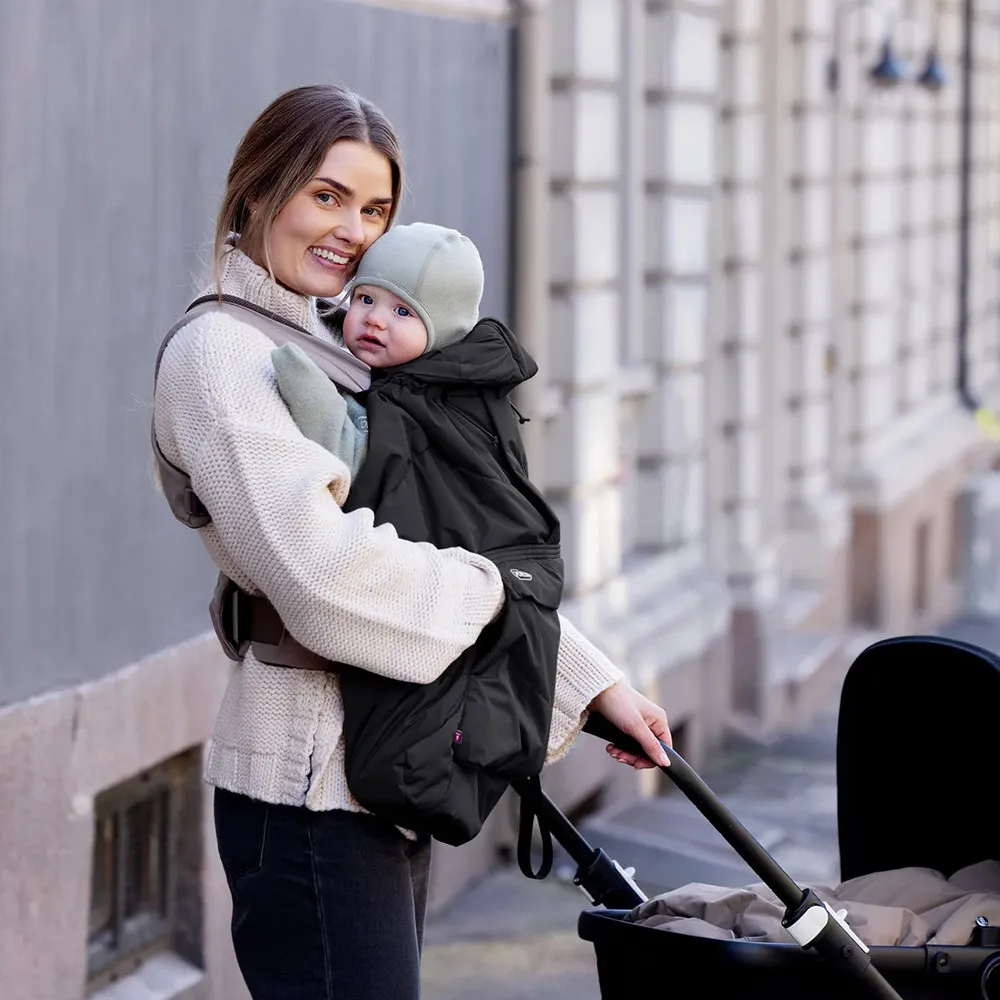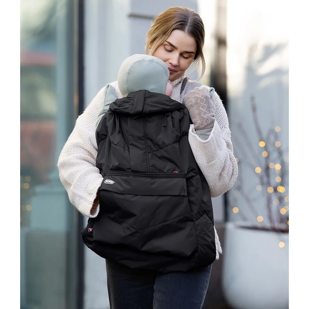 Voksi® Carrier Cover е подходящо както за носене с лице към родителя, така и навън, и може да се използва и в количка или при кърмене на открито – за да осигури на бебето уют и топлина навсякъде, където сте.